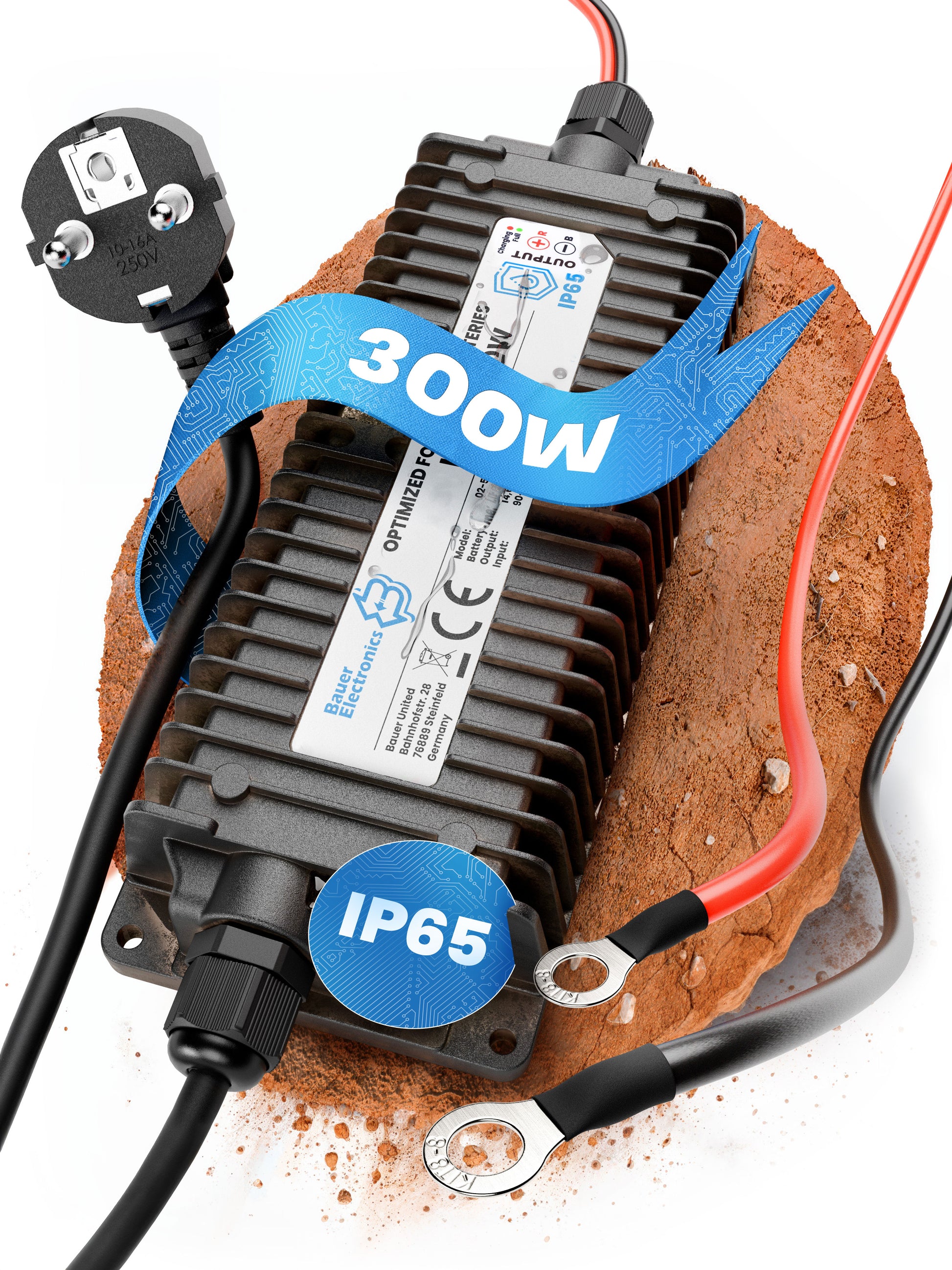 - EINSATZGEBIET | Unser Batterieladegerät erreicht bis zu 96% Effizienz bei bis zu 300 Watt Ladeleistung. Dadurch wird ermöglicht, eine 60AH Batterie in nur 3,8 Std. vollständig zu laden.
