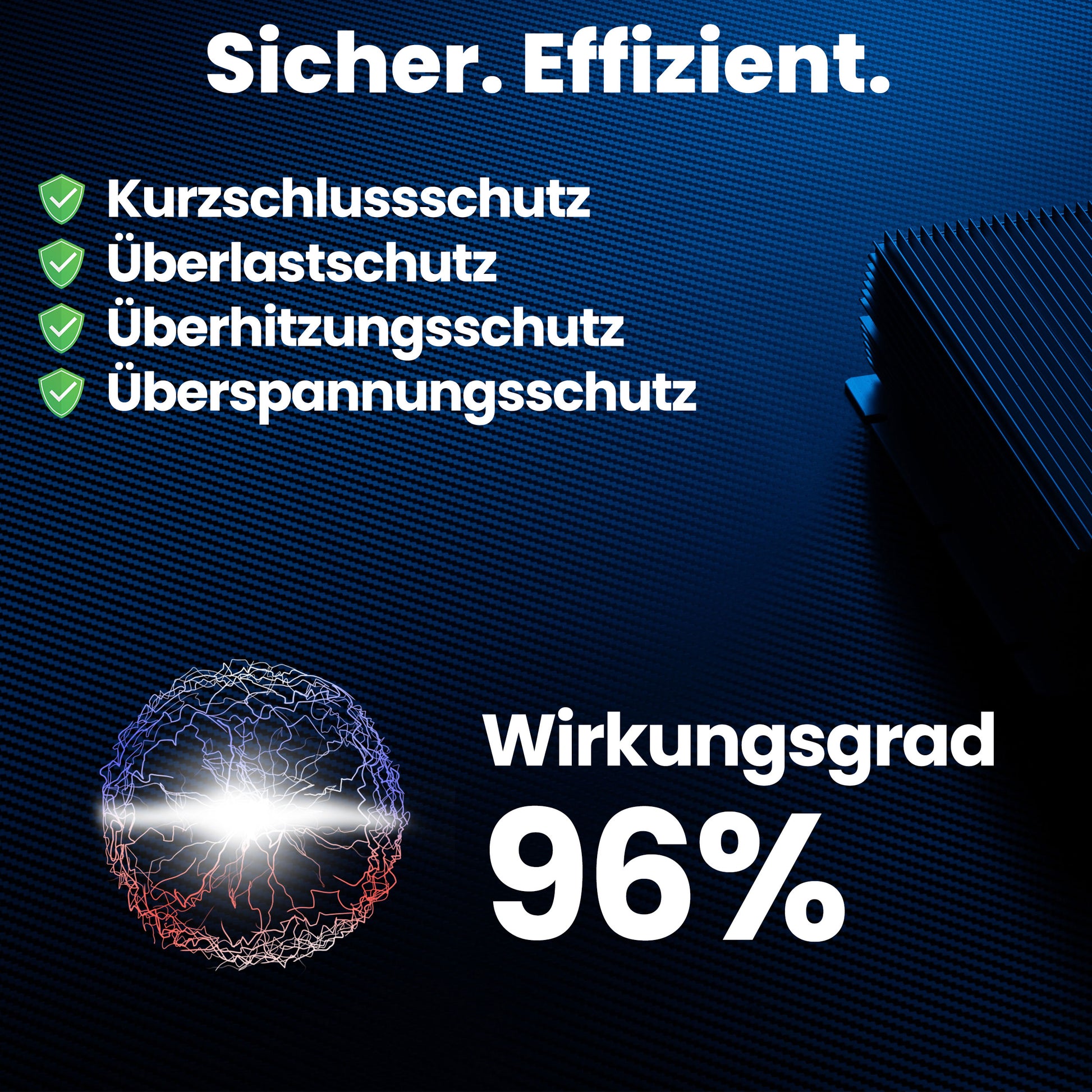 Protective circuits | Overvoltage protection, reverse polarity protection, short circuit protection, overload protection as well as overheating protection ensure safety. Please refer to the data sheet of the respective unit.