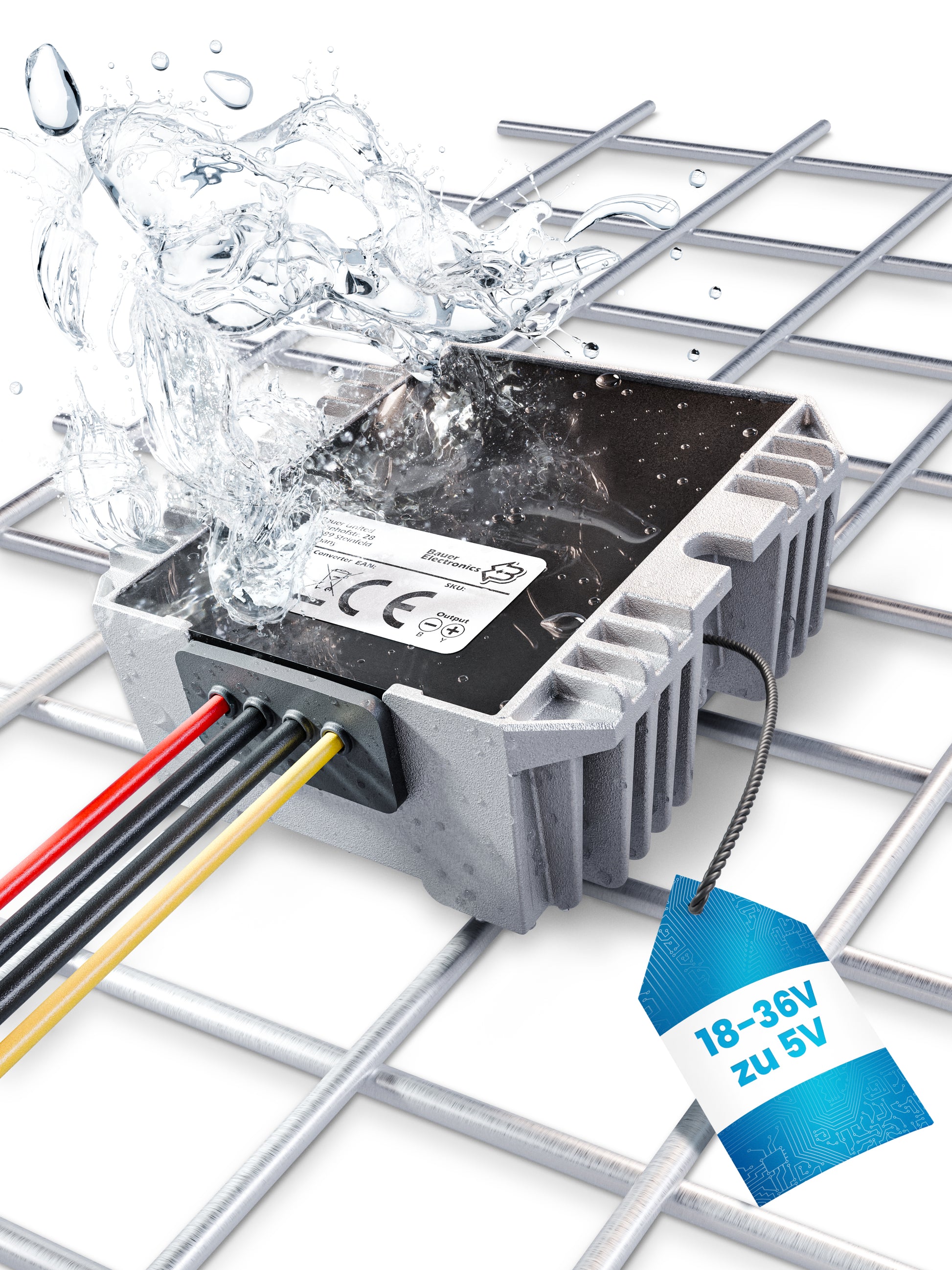 WASSERDICHT IP68 | Der Charger wird mit Epoxidharz wasserdicht vergossen und erlaubt individuellen Einsatz z.B. im Außenbereich als Stromversorgung für Beleuchtungen oder auf See, verbaut in Booten.