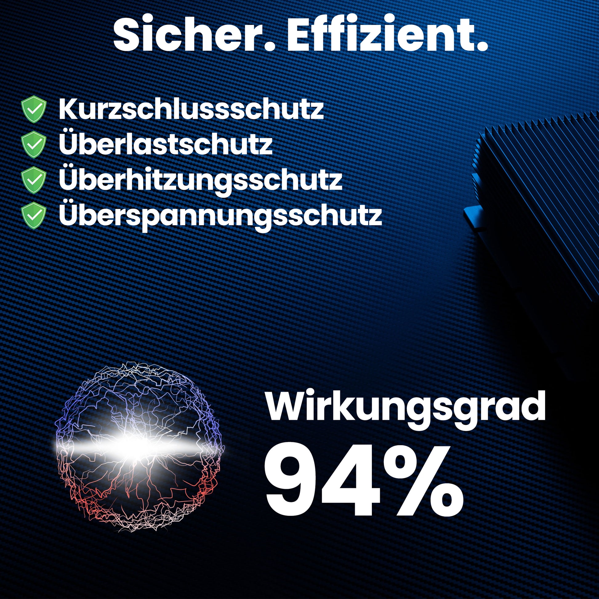 Protective circuits | Overvoltage protection, reverse polarity protection, short circuit protection, overload protection as well as overheating protection ensure safety. Please refer to the data sheet of the respective unit.