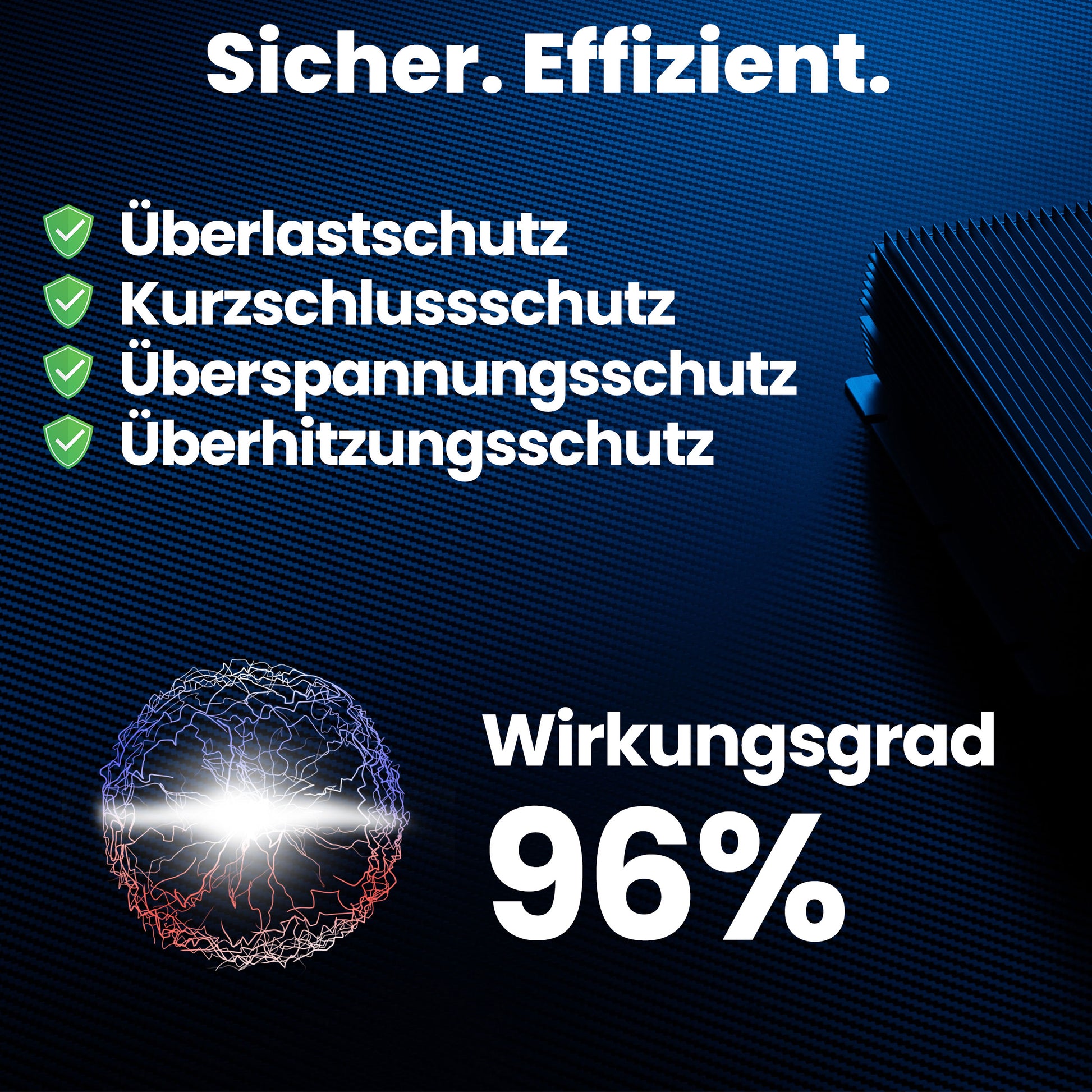 Protective circuits | Overvoltage protection, reverse polarity protection, short circuit protection, overload protection as well as overheating protection ensure safety. Please refer to the data sheet of the respective unit.