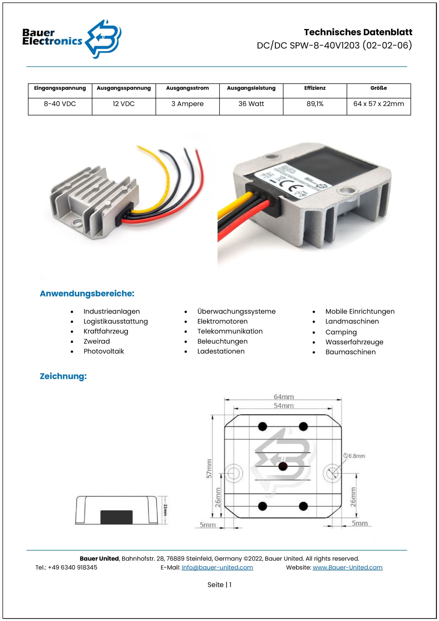 Connection | The DC/DC converter is supplied with tin-plated, open ends. Please refer to the respective data sheet for the cross-section and cable length.