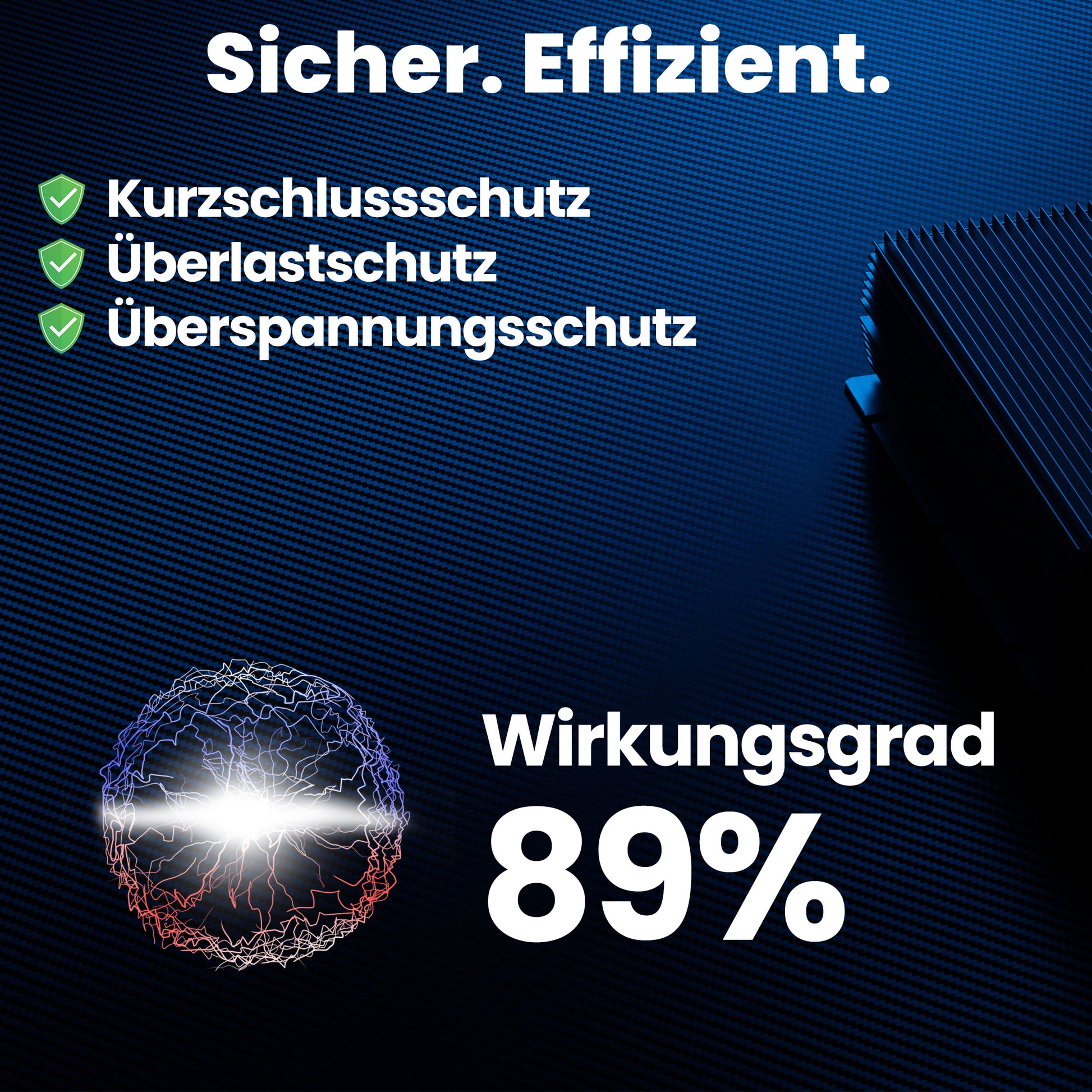 Protective circuits | Overvoltage protection, reverse polarity protection, short circuit protection, overload protection as well as overheating protection ensure safety. Please refer to the data sheet of the respective unit.