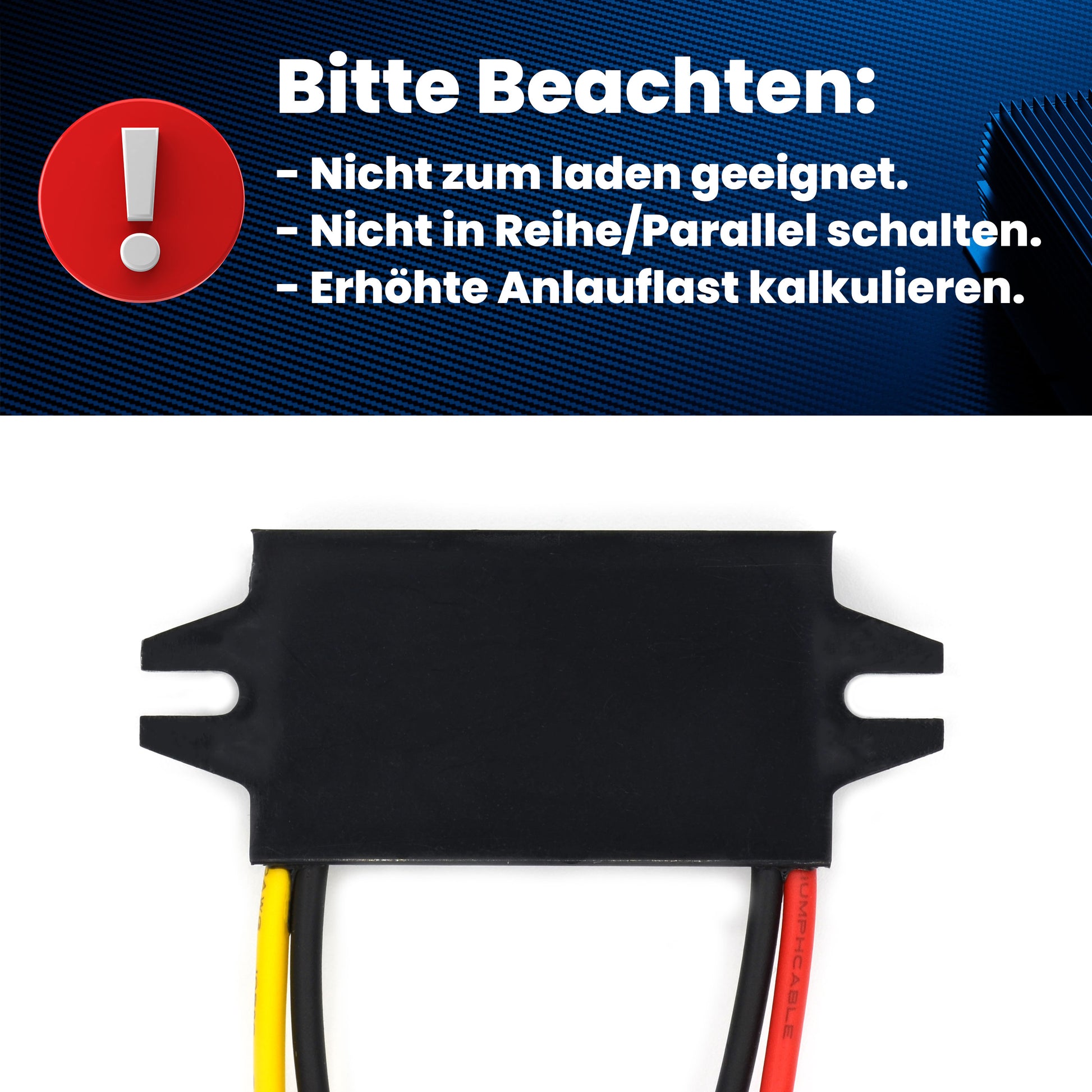 Caution | Never operate electrical appliances permanently at the power limit, as this may cause damage. Ensure that the cables are intact and that the polarity of the connections is correct.