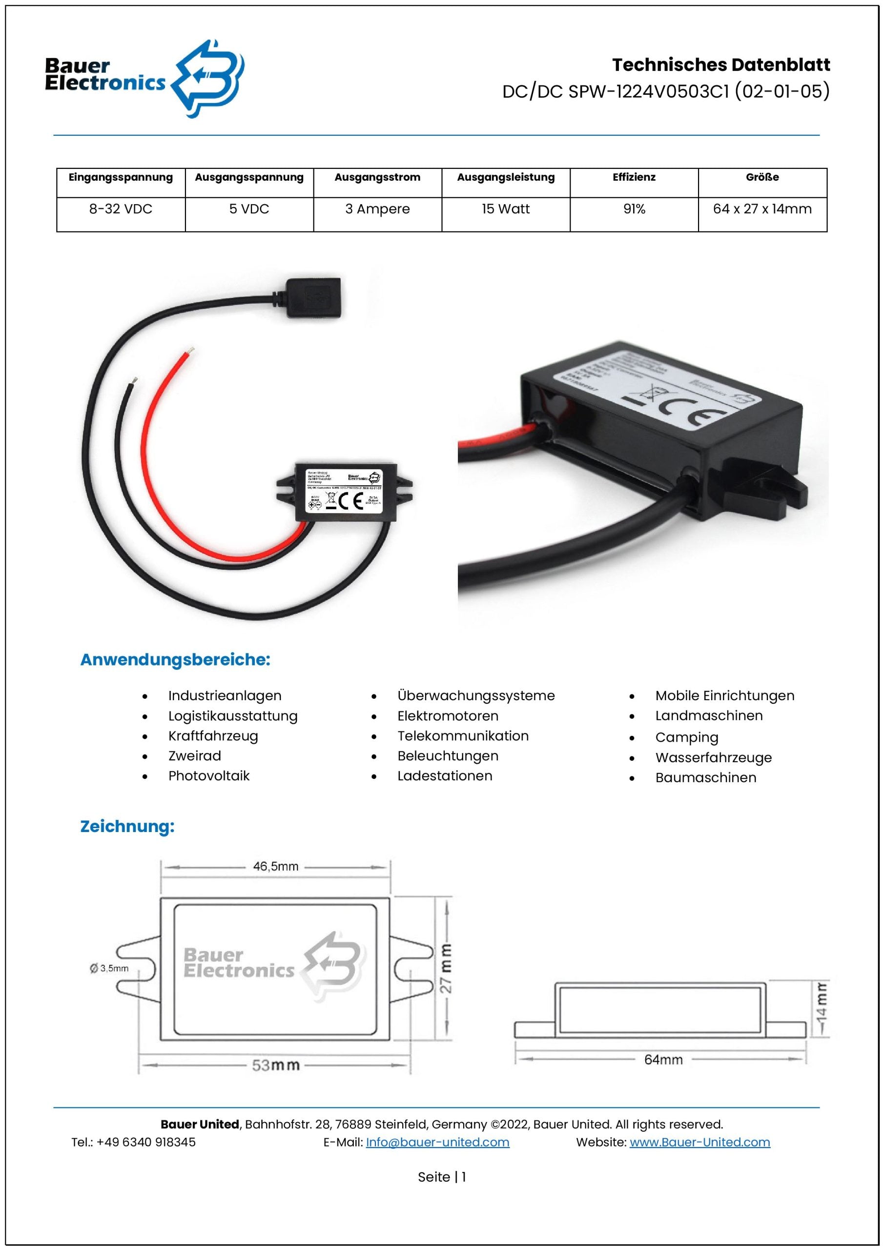 Connection | The DC/DC converter is supplied with tin-plated, open ends. Please refer to the respective data sheet for the cross-section and cable length.