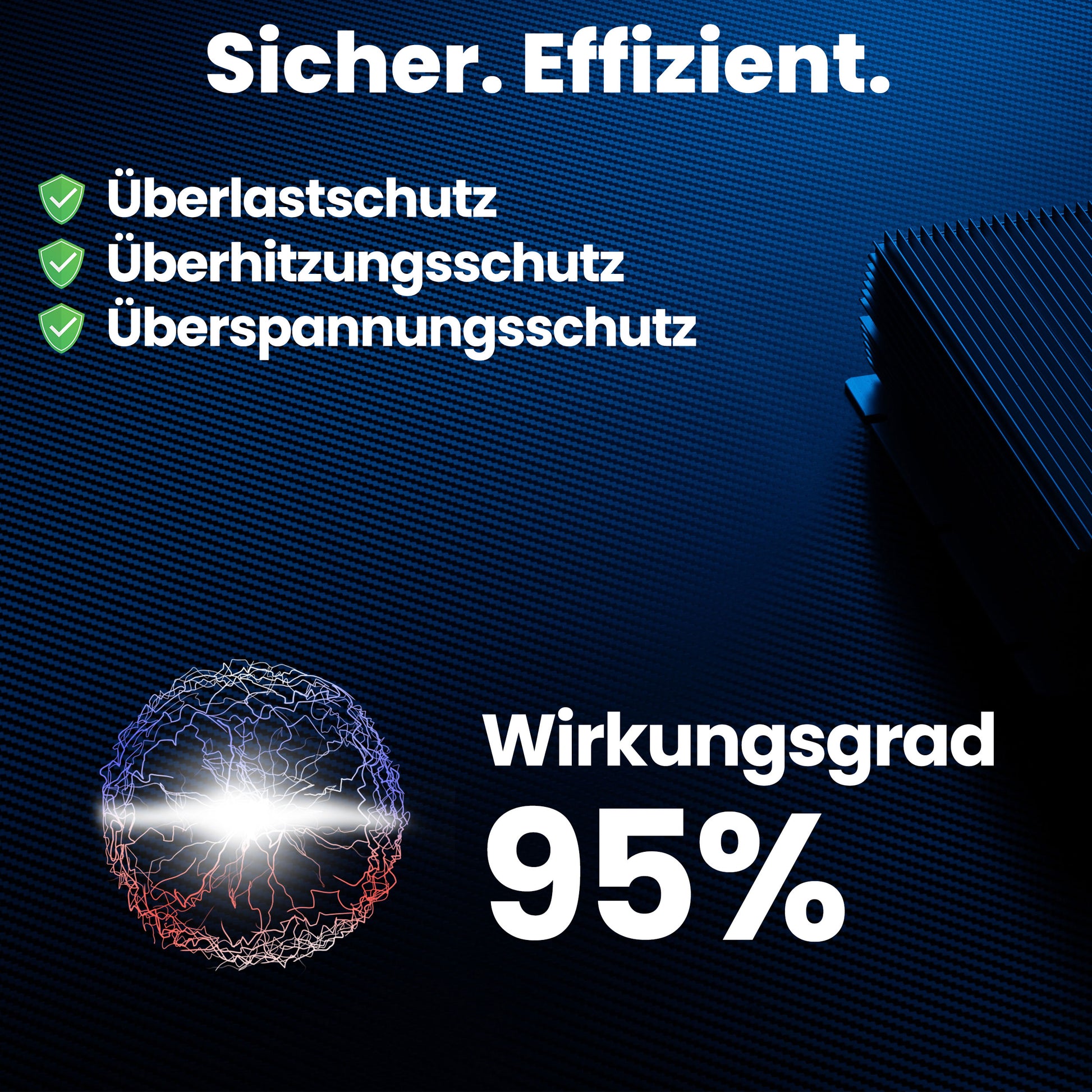 Caution | Never operate electrical appliances permanently at the power limit, as this may cause damage. Ensure that the cables are intact and that the polarity of the connections is correct.