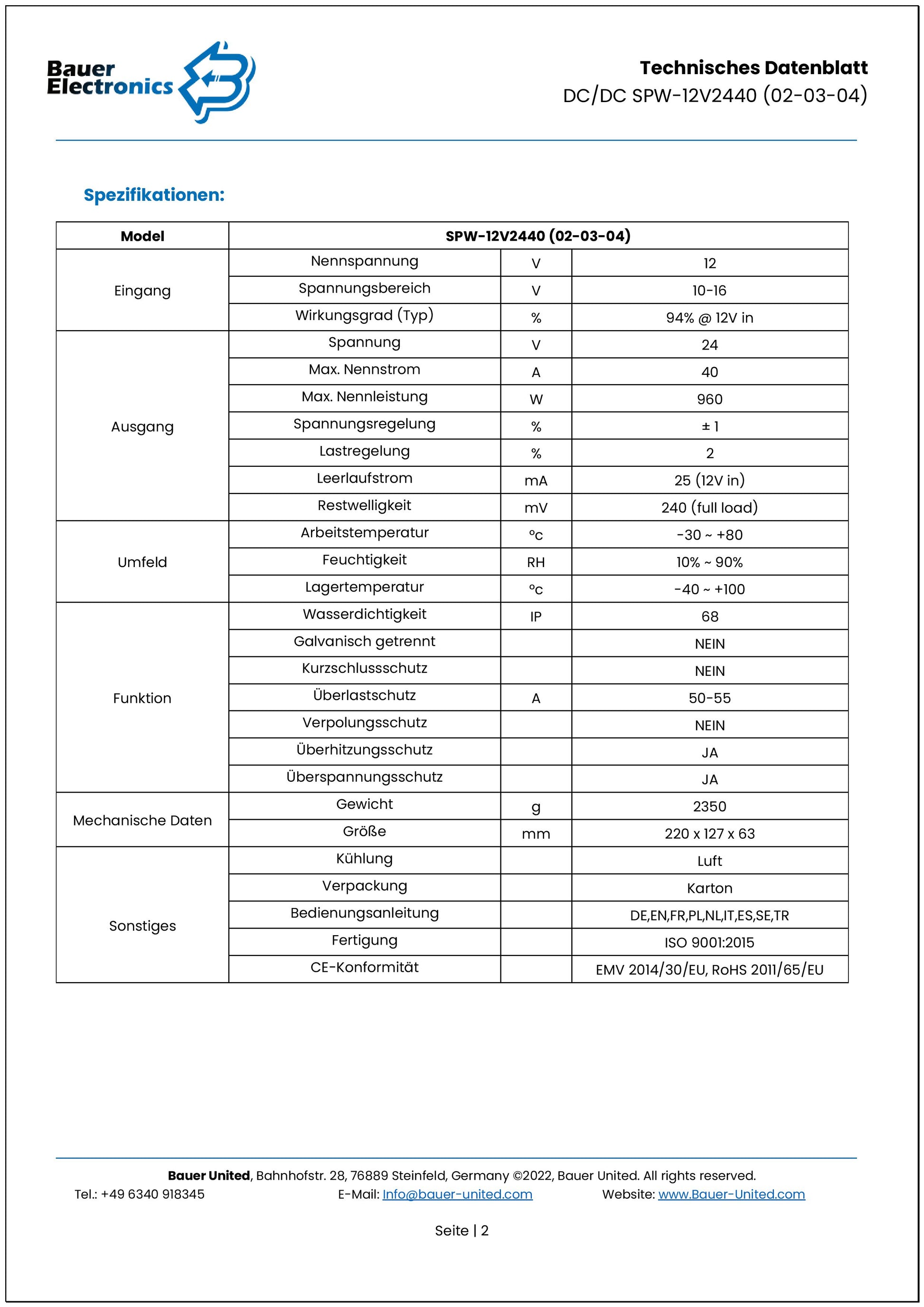 Protective circuits | Overvoltage protection, reverse polarity protection, short circuit protection, overload protection as well as overheating protection ensure safety. Please refer to the data sheet of the respective unit.
