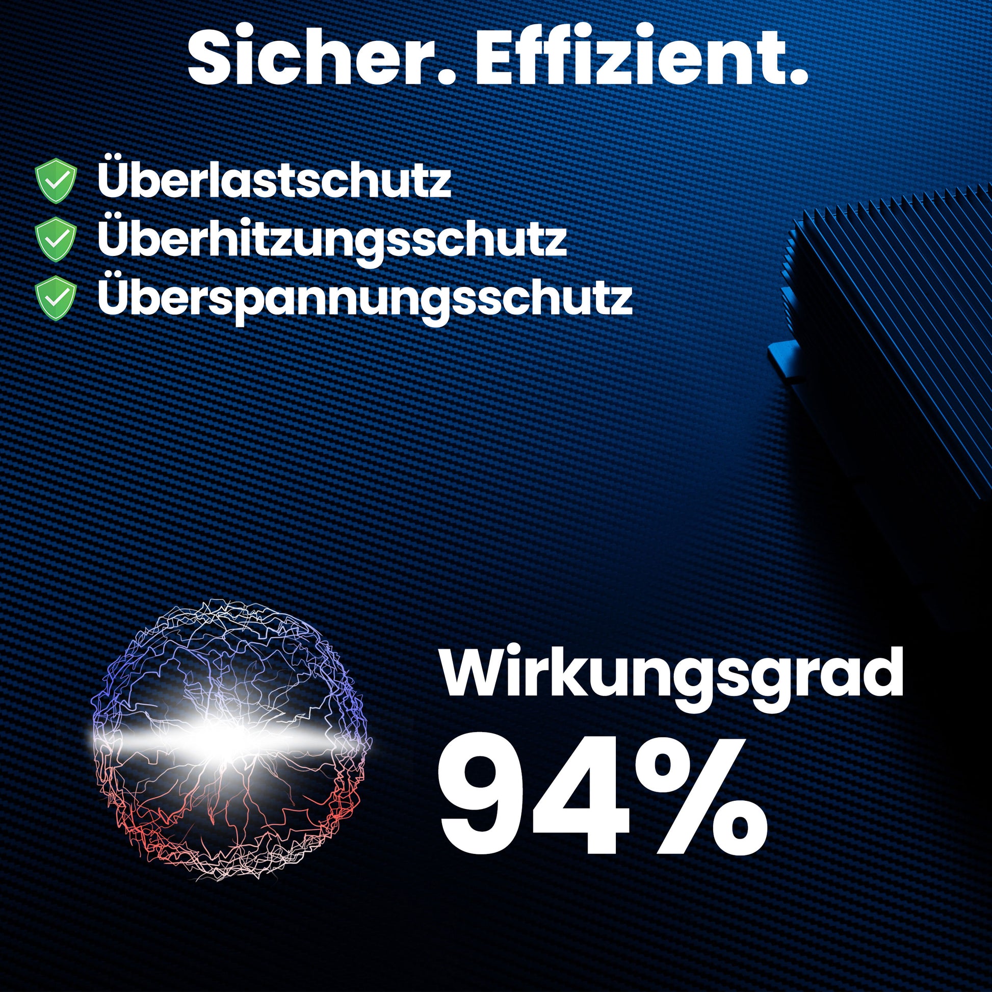 Protective circuits | Overvoltage protection, reverse polarity protection, short circuit protection, overload protection as well as overheating protection ensure safety. Please refer to the data sheet of the respective unit.