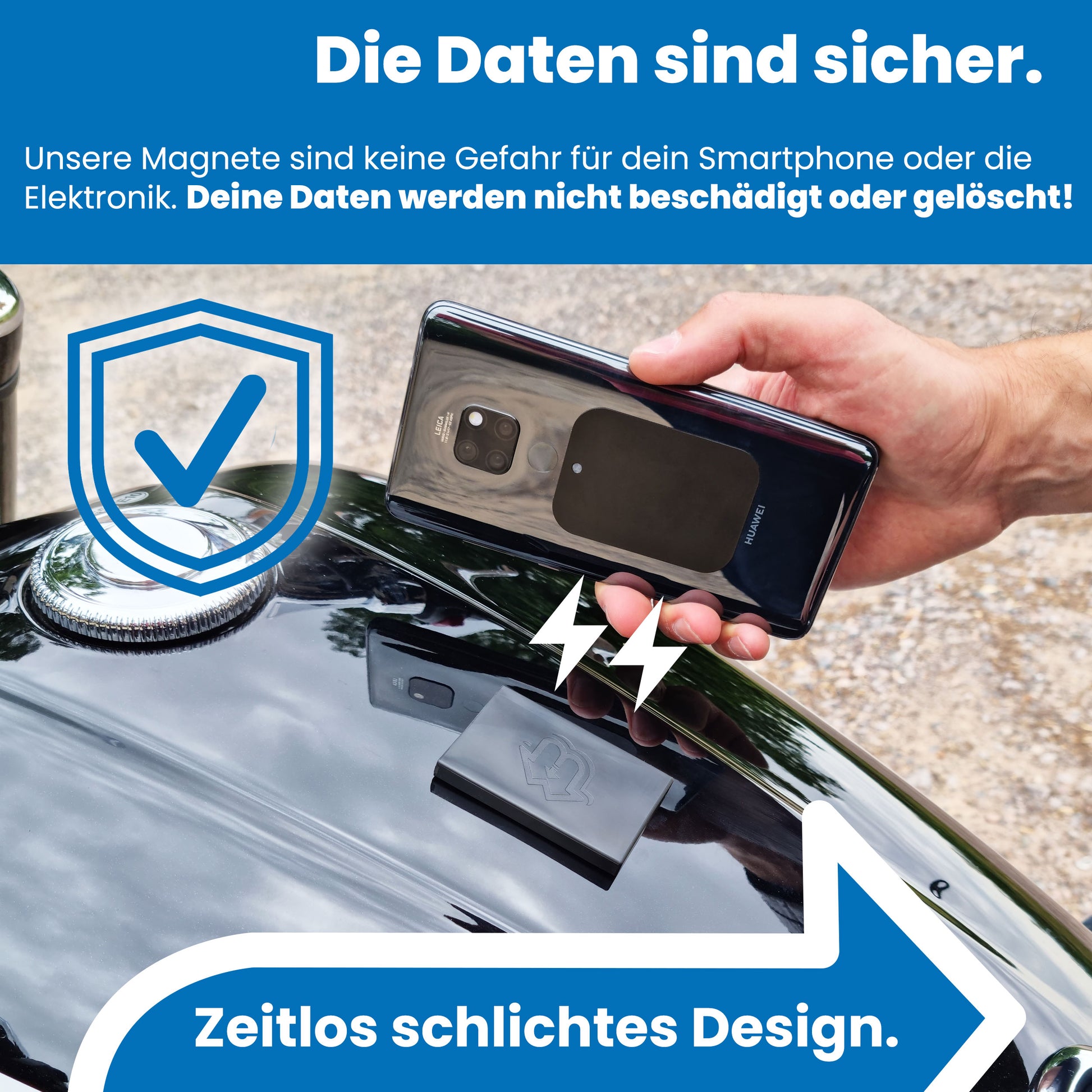 The special surface reduces vibrations and achieves enormous adhesion. The material has excellent UV resistance values and can withstand all weather conditions. In addition, our magnets pose no risk to the electronics or data on the smartphone. Check out our blog post about it.
